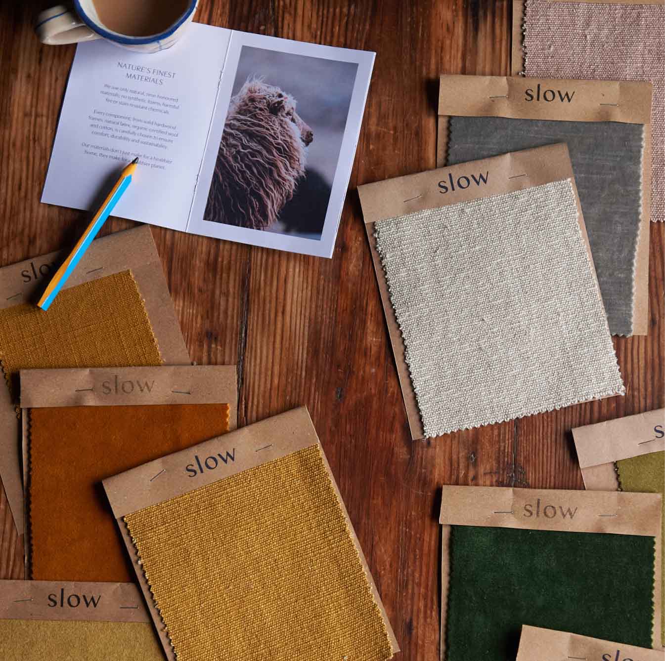 Order a selection of free swatch samples to experience our fabrics at home. All of our materials are carefully sourced, producing the highest quality fabric with as little environmental impact as possible. Our natural fabrics are all biodegradable and manufactured without the use of chemicals or pesticides. Many of our man-made fabrics are produced from recycled materials diverted from landfill.